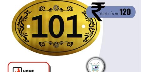 Welcome positivity and elegance to your doorway with the “Subhiksham” premium wooden name plate, artistically crafted by artsnprints.com.